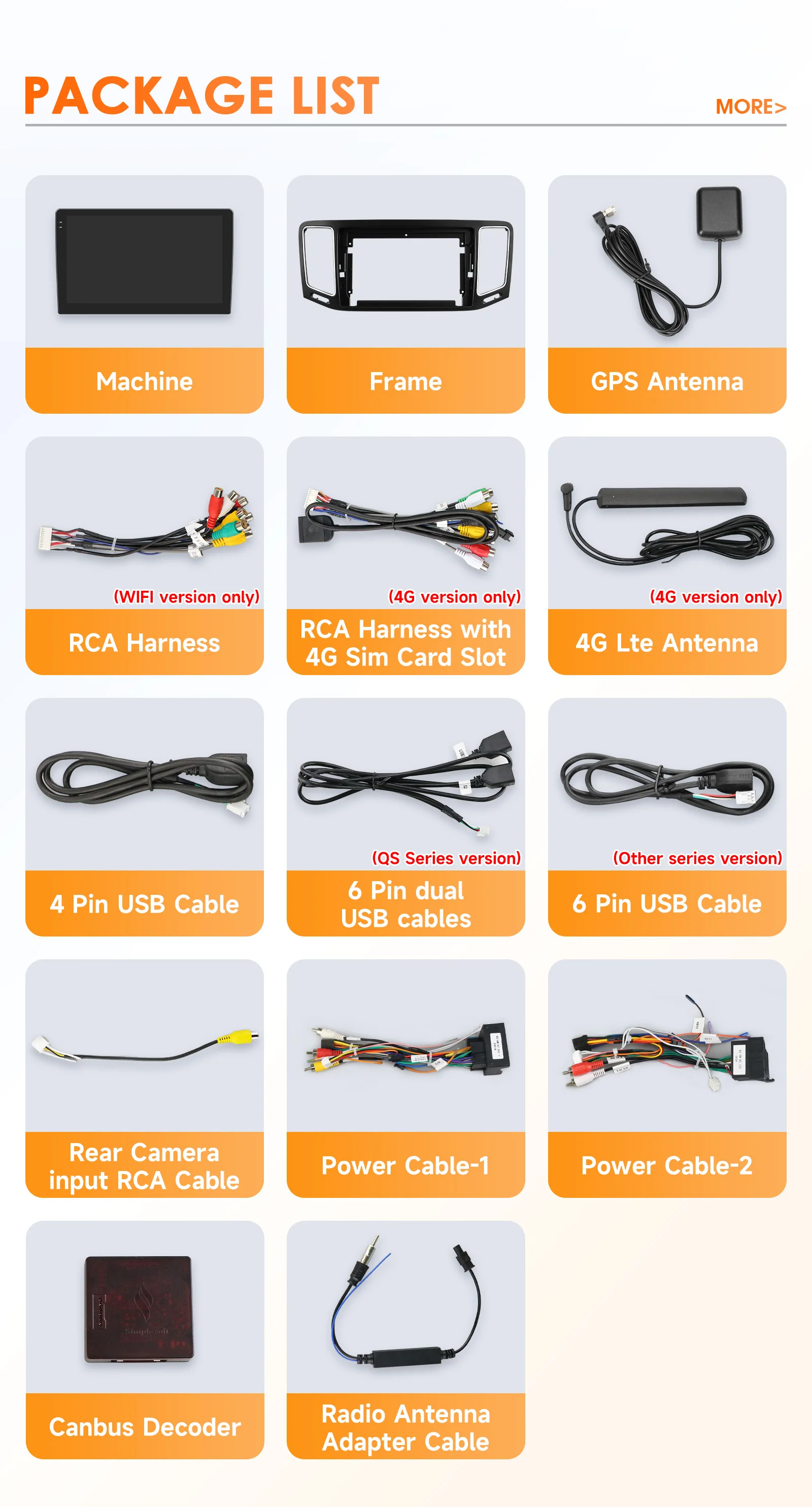 Elenco dei pacchetti Accessori standard: spediti insieme all'unità principale (ma si prega di prestare attenzione alle parole in rosso degli accessori, se sono disponibili o meno, a seconda dell'opzione dell'articolo che si sceglie di acquistare)