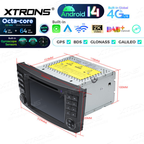 Mercedes Benz E-class W211 E200 E220 E300 E350 E240 E270 E280 W219 7" 4GB/64GB Octacore Android 14 CD / DVD /USB Carplay Android auto wireless wifi bt gps 4g PX74M211GS