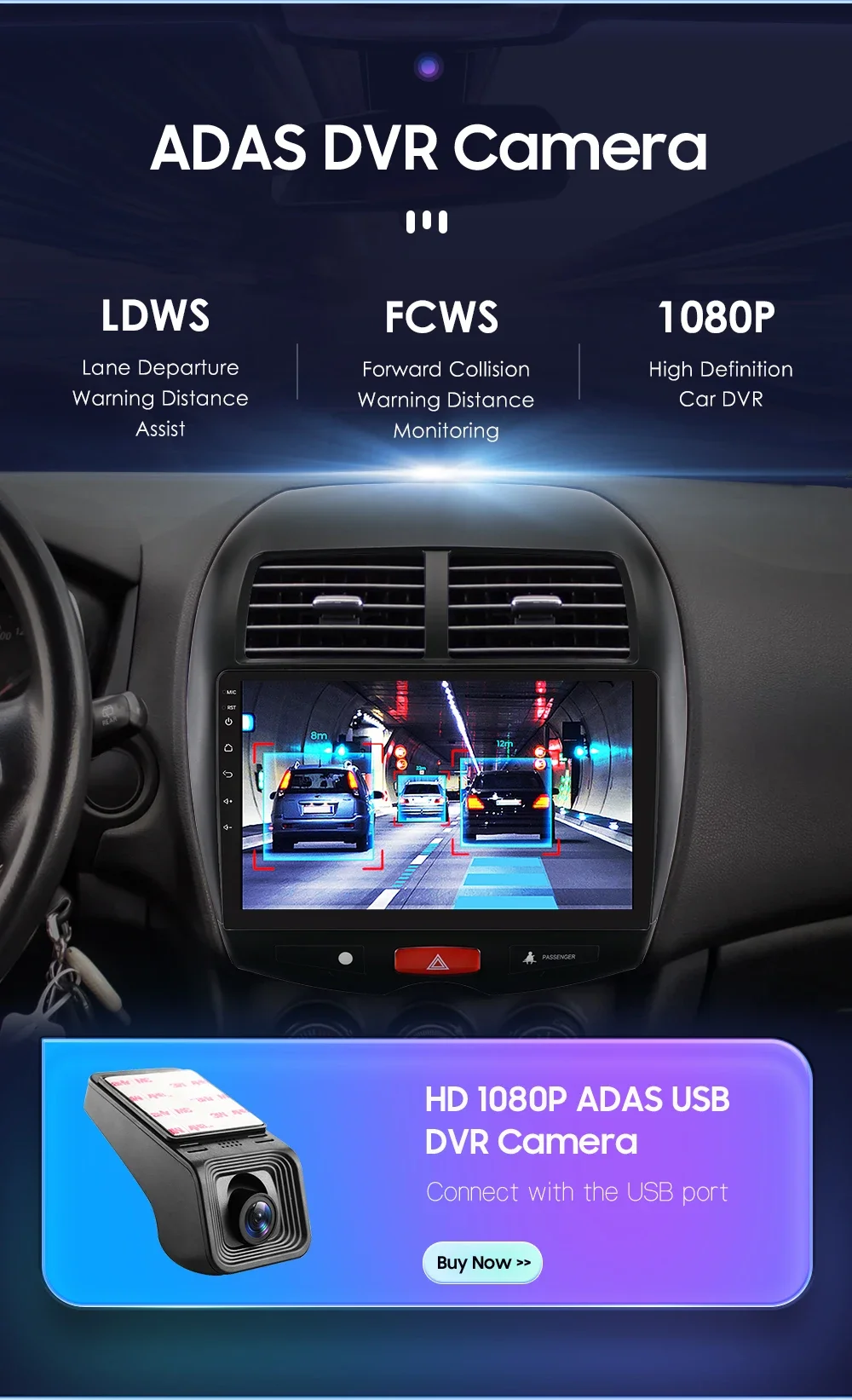 HD 1080P ADAS DVR Camera(Needs to order separately) --connect with the USB port: LDWS(Lane Departure Warning Distance),FCWS(Forward Collision Warning Distance), 1080P(High Definition Car DVR). (picture show of manual version item)