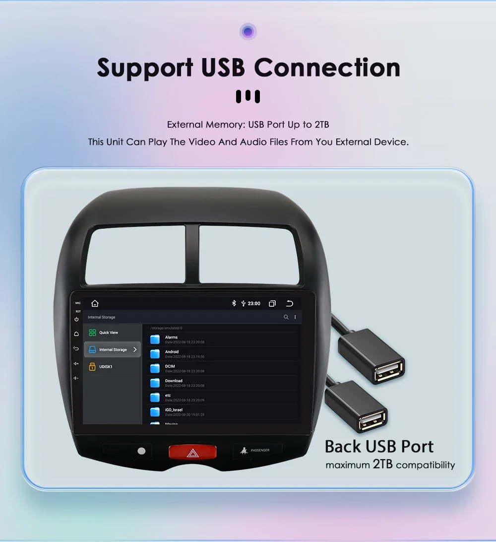 External Memory: USB port up to 2TB,this unit can play the video and audio files from your external device. (picture show of manual version item)