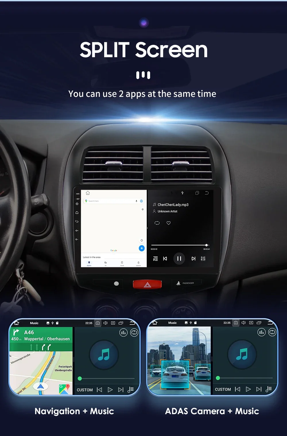 Split Screen : You can use 2 apps at the same time (such as: Navigation + Music , ADAS Camera + Music ,etc.) (picture show of manual version item)