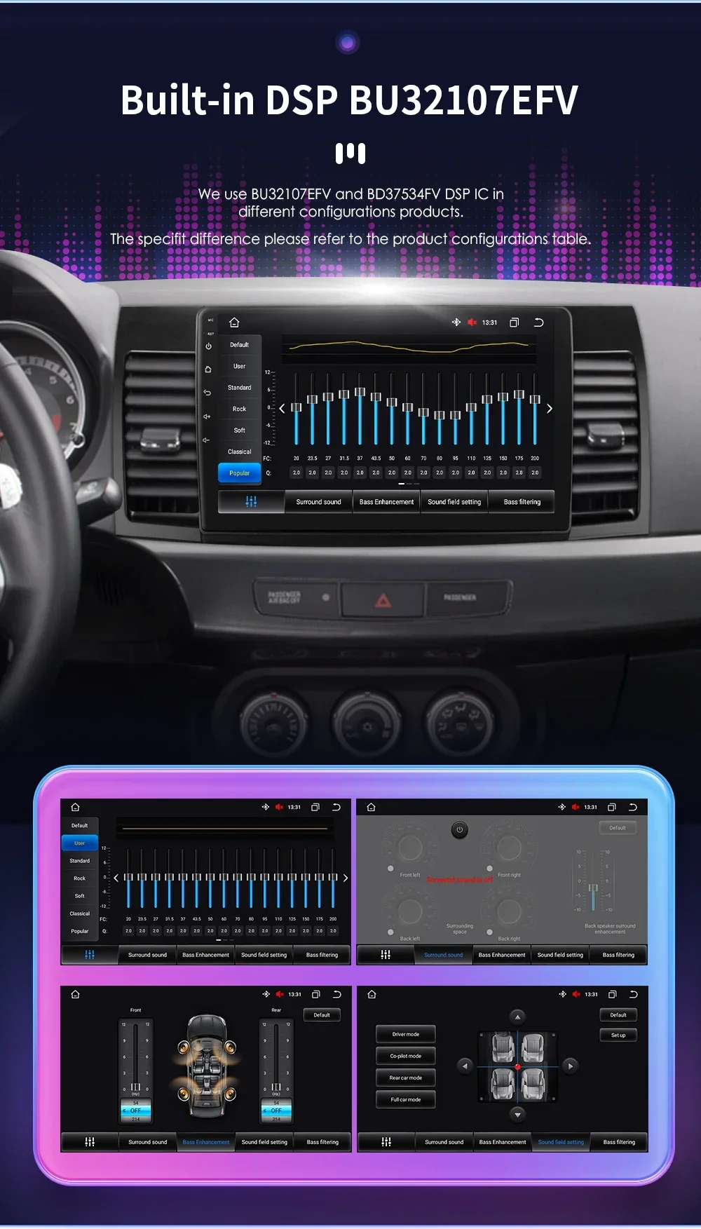 DSP integrato BU32107EFV: utilizziamo BU32107EFV e BD37534FV DSP IC in diverse configurazioni di prodotti. Per le differenze specifiche, fare riferimento alla tabella delle configurazioni del prodotto.