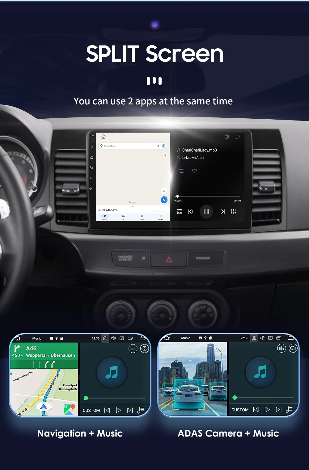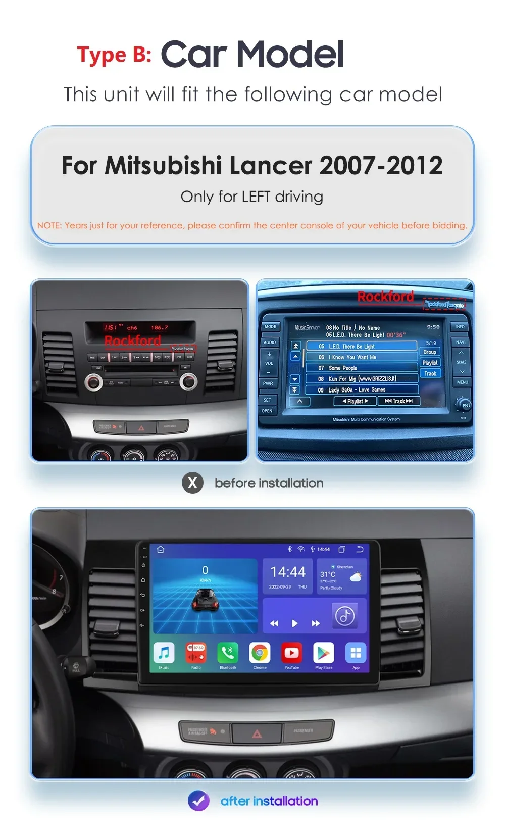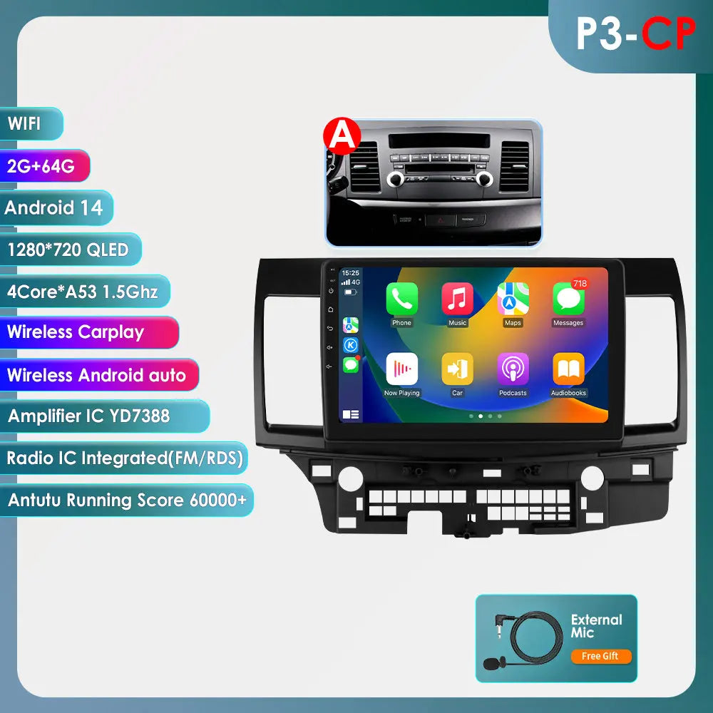 Mitsubishi Lancer 2007-2012 9" Android 14 Carplay Android auto wireless wifi bt gps 4g AUTMLCRMT