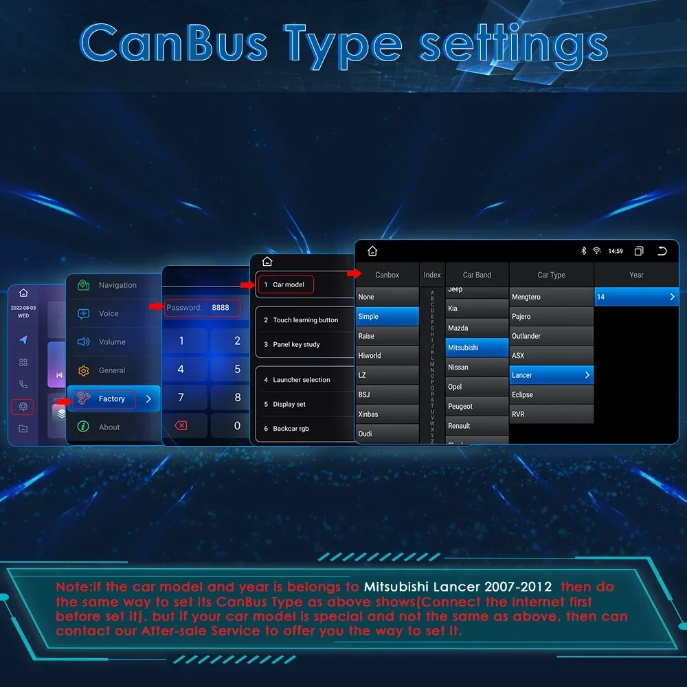 serie S Impostazioni tipo Canbus: Fabbrica - 8888 (password) - Modello auto - Semplice - Mitsubishi - Lancer - 14 - ok.