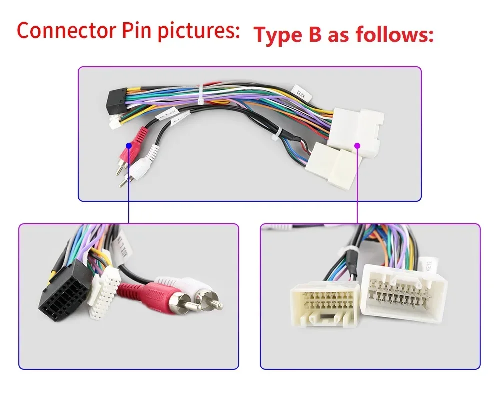 (Nota: se il pin del connettore da installare con i cavi dell'auto non è lo stesso, è necessario contattare il servizio post-vendita per ordinare un cavo speciale per l'installazione)