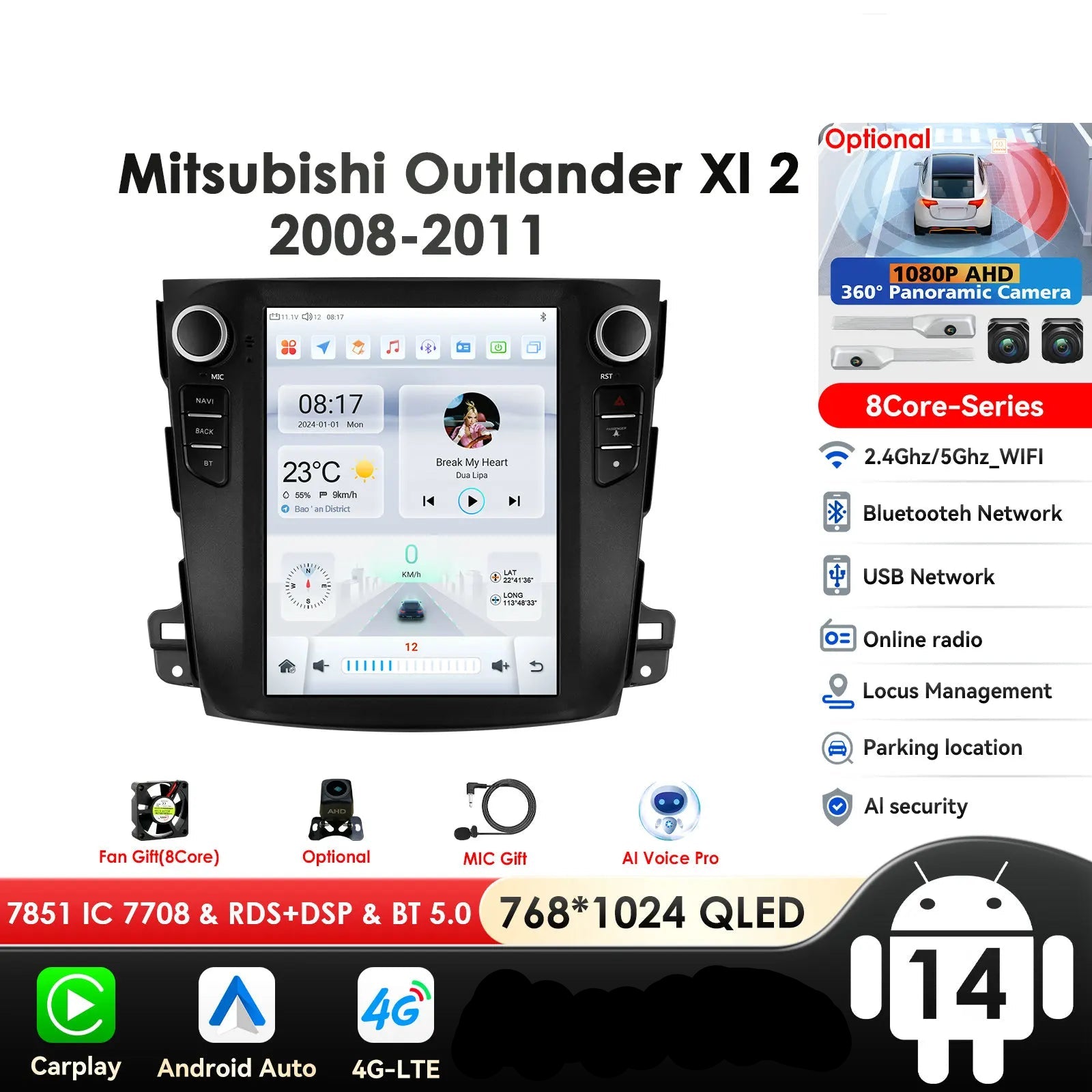 Mitsubishi Outlander Xl 2 2008-2013 9,7" Android 14 Carplay Android auto wireless wifi bt gps 4g AUTMXLOMX