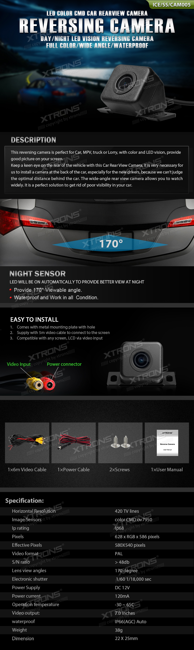Telecamera per retromarcia impermeabile con visione 170° CAM005