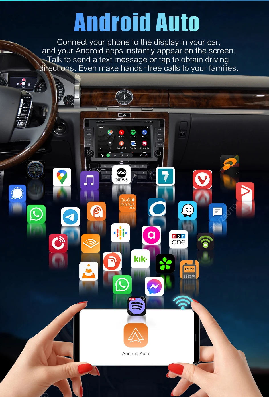 🚘 【Android Auto wireless/cablato 】Collega semplicemente il tuo telefono in modalità wireless per usufruire delle funzioni Android Auto. Supporta l'accesso alla navigazione, ai contatti del telefono, alla musica, ecc. Tramite Siri o Google Assistant per aiutarti a vivere un'esperienza di guida più intelligente e comoda mentre ti concentri sulla strada.