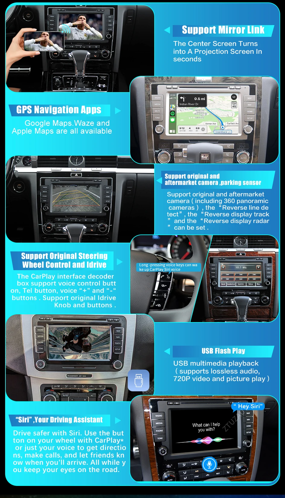 Volkswagen Magotan Tiguan Passat RNS510 Series / Phaeton Wireless Apple CarPlay Android Auto Mirror Link AUTMMTPPH