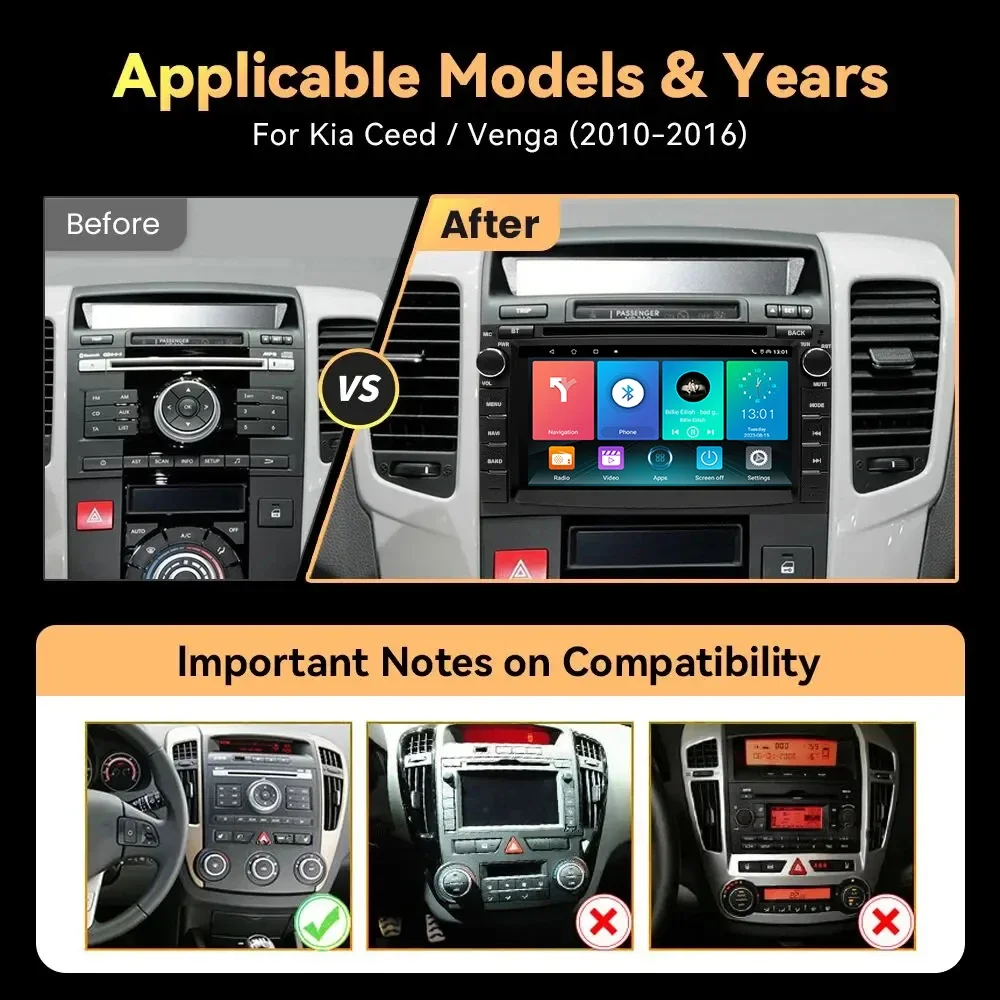 *Sebbene abbiamo fatto ogni sforzo per garantire che questa unità sia compatibile con i veicoli elencati, ti preghiamo di controllare l'anno, le dimensioni e la forma della console centrale dei tuoi veicoli prima dell'acquisto
