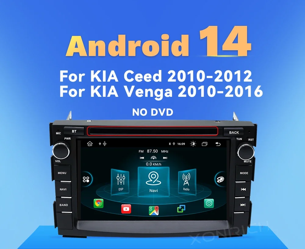 Kia Ceed 2010 -2012 Venga Android 7" Android 14 Carplay Android auto wireless wifi bt gps 4g AUTM9N0X